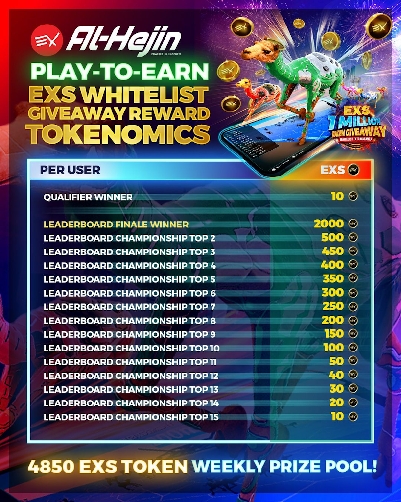 Earn EXS Whitelist rewards when you buy an Official Al Hejin Camel Pack of 3 on the primary marketplace.