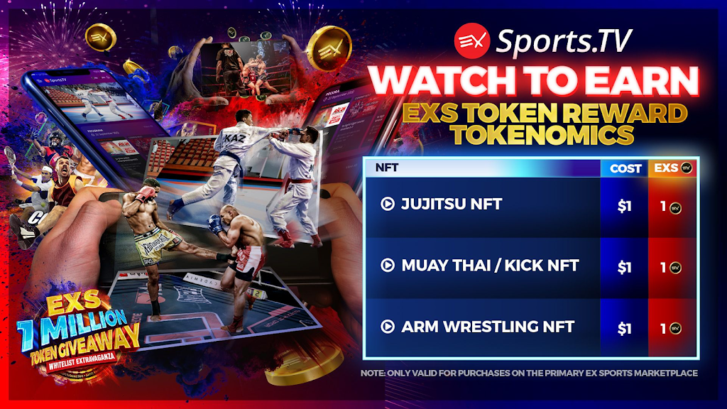 Currently, all Ju-Jitsu, Muay Thai, and Powerlifting NFTs qualify. EX Sports will announce upcoming events, participating athletes, and their corresponding NFTs.